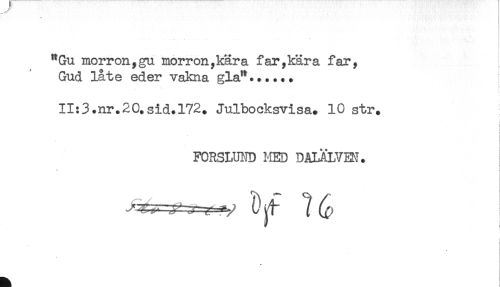 //// "Gu morron,gu morron,kära far,kära far, //// Gud late eder vakna gla"...... //// II:3.nr.20.sid.172. Julbocksvisa. 10 str. //// i //// < //// ! //// FORSLUND HED DALÄLVEN. //// ) //// < //// * //// * ////
