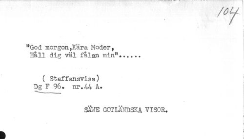 //// * < //// ! //// < //// "God morgon,Kära Moder, //// Håll dig väl fålan min"...... //// ( Staffansvisa) //// Dg_F 96. nr.4A A. //// SÄWE GCTMNDSKA VISOR. //// i- //// ! //// : ////
