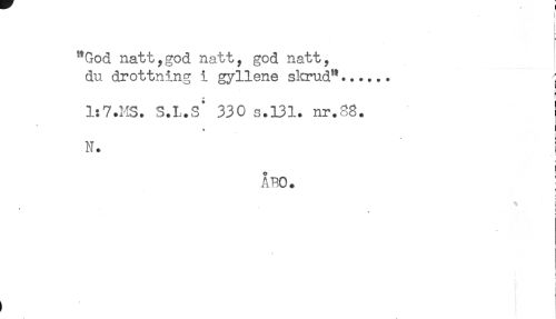 //// "God natt,god natt, god natt, //// du drottning i gyllene skrud".......-j //// s //// 1:7.HS. S.L.S* 330 s.131. nr.88. ! //// i //// N. ! //// ! //// A BO. //// ! //// ) //// i //// * //// t ! ////