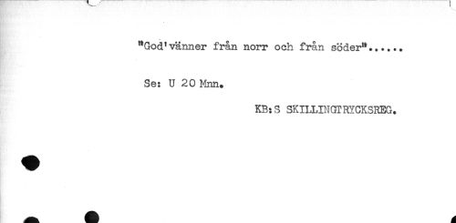 //// "God'vänner från norr och från söder"...... //// Se: U 20 Mnn. //// KB: 3 SKIHINGTRYCKSREG. ////