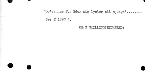 //// "Go'vänner för Eder mig lyster att sjunga"... //// Se: E 1890 j.' //// . //// KB:S SKILLINGTHYCKSREG: ////