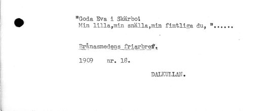 //// ^ "Goda Eva i Skärbot //// ^^ Min lilla,Riin snällaymin fintliga du? //// Brånasmedens friarbref+ //// --"-« t. - * "***' -** -t." "'K^-M' -"7*. . n^,.-... - . -^ //// 19C9 nr. 18. //// DALKUI,LåH. //// L ////