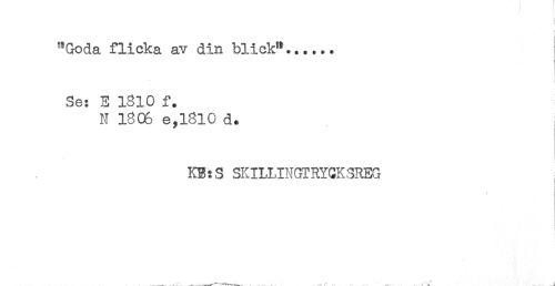 //// "Goda flicka av din blick"...... //// f //// i. //// Se: E 1810 f. //// N ISOS e,l8l0 d. //// KB:S SKILLINGTRYCKSREG //// t //// ! //// ____- ____. ^V^"***' -' . . ' J ////