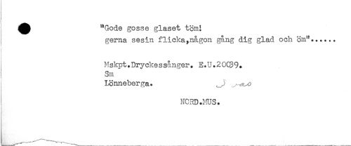 //// : //// ^^ "Gode gosse glaset töm! //// gerna sesin flicka^någon gång dig glad och öm**...., //// } //// T //// Mskpt.Dryeke s sånger. E. U. 2 0CS9. //// Sm //// < //// Lönneberga. //// NORD .ms. //// ] ////