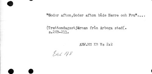 //// "Boder afton,Göder afton både Herre och Fru".... //// < i- - -- //// (Trettondagsstjernan från Arboga stad(. //// S.2C9-211. //// AIN.HS KB Vs 2:2 ////