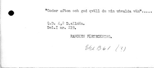 //// i] //// HB //// I ^ "Göder afton och god qväll du min utvalda vän"..... //// Q.D. D.allmän. //// Del.I nr. 219. //// RANCKEN BETECKNING. //// ' ////