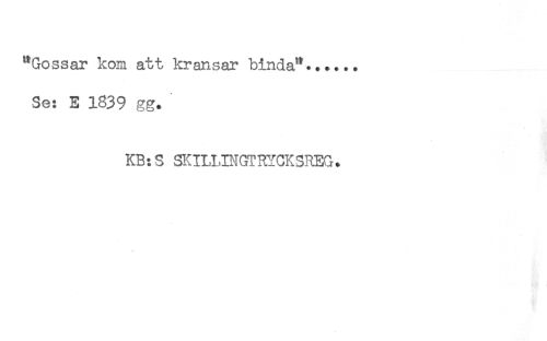 //// "Gossar kom att kransar binda"...... //// Se: E 1839 gg. //// KB:S SKILLINGTRYCKSREG. //// * ////