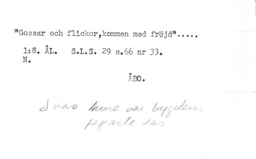 //// "Gossar och flickor,kommen med fröjd"..... //// 1:8. ÅL. S.L.S. 29 s.66 nr 33. //// N. //// ÅBO. //// ---..- ////
