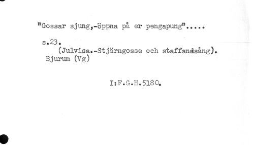 //// "Gossar sjung,-öppna pa er pengapung"..... //// s.23. //// (Julvisa.-Stjämgosse och staffanåsång). //// Bjurum (Vg) //// I:F.G.H.5180. ////