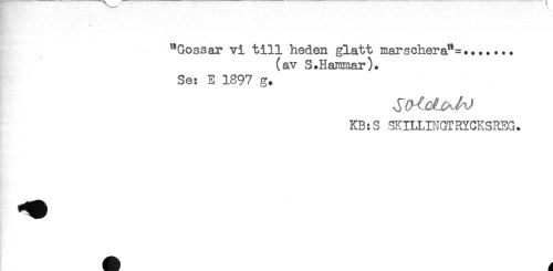 //// "Gossar vi till heden glatt marschera"-....... //// (av S.Hammar). //// Se: E 1897 g. //// KB:S SKILLINGTRYCKSREG. ////