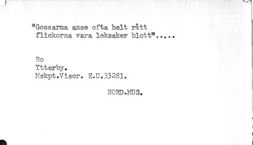 //// ^Gossarna anse ofta helt rått //// flickorna vara leksaker blott'*..... //// Bo //// Ytterby. //// Mskpt.Visor. E.U.33281. //// NORD .MUS. //// x //// c //// !_ //// - //// -! ////