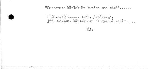 //// "Gossarnas kärlek är bunden med strå"....,. //// B 26.s.105.---- lstr. /småver§/. //// jfr. Gossens kärlek den hänger på strå"..... //// RA. //// ^ - ....... < ' - '* ' * ' ' " * ..... * ' ' ' ^ //// L r \ . _____ ____ ////
