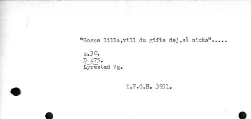 //// "Gosse lilla,vill du gifta dej,så nicka"..... //// s.30. //// D_275. //// Lyrestad Vg. //// ^ I.F.G.H. 3931. //// . j ////