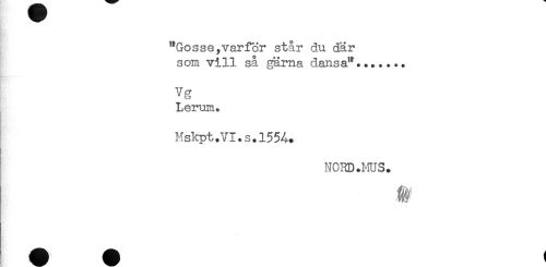 //// "Gosse,varför står du där //// som vill så gärna dansa"....... //// V" //// v a //// Lerum, //// j Mskpt.VI.s.1554. //// NORD.MUS. ////