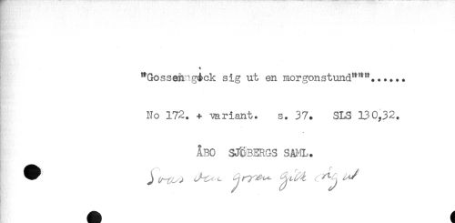 //// * //// . //// "Gossehng&ck sig ut en morgonstund"""...... //// No 172. + variant. s. 37. SLS 130,32. //// . //// ÅBO SJÖBERGS SAML. ////