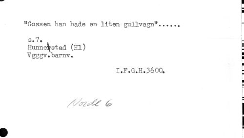 //// "Gossen han hade en liten gullvagn"...... = //// s.7. „ r //// HunneT st ad (Hl) [ //// Vgggv.barnv. g //// B //// I.F.G.H.3600. //// ) //// H //// ! //// t //// < //// / ^ j //// ^^ s ////