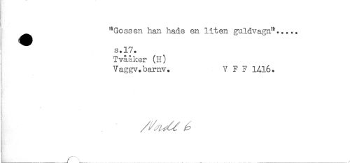 //// ^^^ "Gossen han hade en liten guldvagn"..... //// s.17. //// Tvååker (H) //// Vaggv.barnv. V F F 1416. //// f //// ! ////