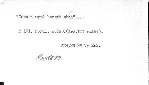 //// . R' - - -. //// "Gossen uppå berget s*twsd".... //// D 191. Nordl. s.360.(Arw.III s.A65). //// ARW.MS KB Vs 2:2. ////