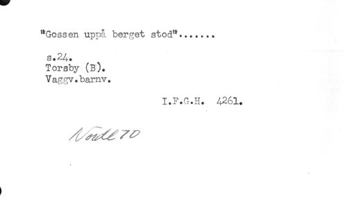 //// "Gossen uppå berget stod"....... //// s.24. //// Torsby (B)+ //// Vaggv.barnv. //// I.F.G.H. 4261. //// * //// ! //// ) ////