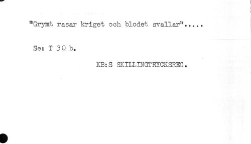 //// I //// i //// "Grymt rasar kriget och blodet svallar"..... //// Se: T 30 b. //// KB:S SKILLINGTRYCKSRBG. ////