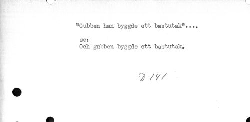 //// "Gubben han byggde ett bastutak".... //// se: //// Och gubben byggde ett bastutak. ////