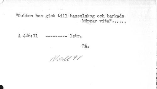 //// * ..... //// "Gubben han gick till hasselskog och barkade ! //// käppar vita"...... //// A 426:11 -.....- Istr. //// ' //// RA. //// i //// i //// ) ////