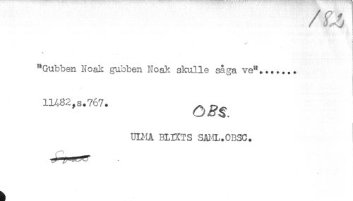 //// "Gubben Noak .gubben Noak skulle såga ve"....... //// 11482,s.767. . //// ULMA BLIXTS SAI-1L.0BSC. ////
