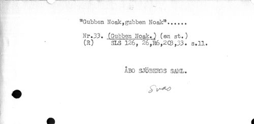 //// "Gubben Noak,gubben Noak"...... //// Nr.33. (Gubben Noak.) (en st.) //// (R) "SLS 126, 26,R6,2C8,33. s.ll. //// K //// - //// ÅBO SJÖBERGS SÅ!IL. ////