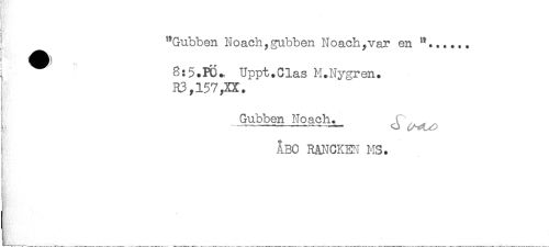 //// { "Gubben Noach,gubben Noach, var en //// ! ^ 8:5.PC. Uppt.Clas M.Nygren. //// R3,157,XX. //// Gubben Noach. f' //// )- - ----- //// ÅBO RANCKM MS. ////