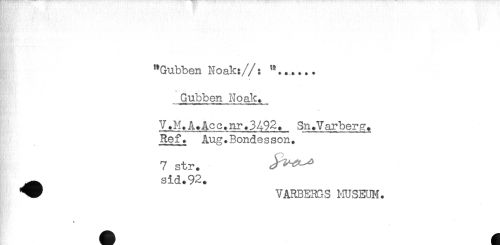 //// "Gubben Noak://: "...... //// Gubben Noak. //// 'HXM^n- tt^mMtHonrti) "tntMtt^m w< t m«)i nx^aMHH^int* . //// a //// V.M.A.Aco.nr.3492. Sn.Varber^. //// Ref. Aug.Bondesson. //// 7 str. //// ^ sid.92. //// ^ VARBERGS HUSEUH. //// A ////
