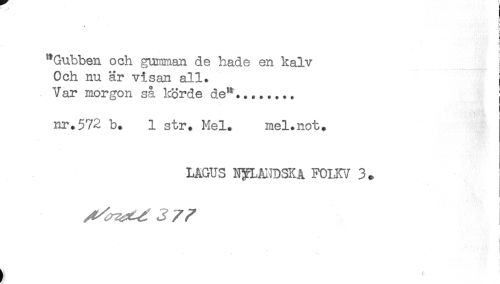 //// ! //// ! //// "Gubben och gumman de hade en kalv //// Och nu är visan all. //// Var morgon så körde de**... //// nr.572 b. 1 str. Mel. mel.not. //// LAGUS N^MHDSKA FOLKV 3. //// t ////