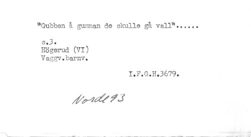 //// "Gubben å gumman de skulle gå vall.^...... //// s.3. //// Högerud (VI) //// Vaggv.barnv. //// I.F.G.H.3679. ////