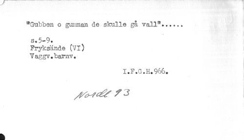 //// ^Gubben o gtmman de skulle gå vall"...... //// s.5-9. //// Fryksände (Vi) //// Vaggv.barnv. //// I.F.G.H.966. ////