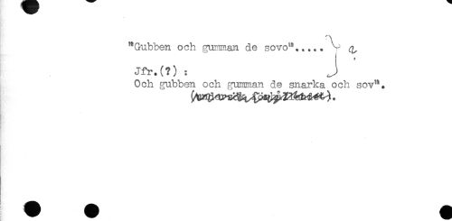 //// "Gubben och gumman de sovo^..... ^ //// Jfr.(?) : J //// Och gubben och gumman de snarka och sov". //// t //// K ////