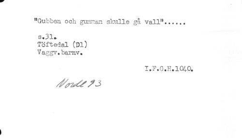 //// "Gubben och gumnan skulle gå vall"...... //// s*31*. //// Töftedal (Dl) //// Vaggv.barnv. //// t //// t ////