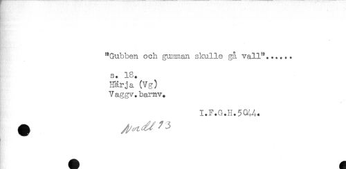 //// "Gubben och gumman skulle gå vall"...... //// * - //// s. IB. //// Härja (Vg) //// Vaggv. barnv* //// I.F.G.H.5CHA. ////