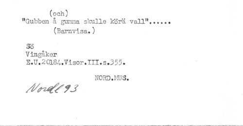 //// (och) //// "Gubben å guiana skulle körä vall"...... //// (Barnvisa.) //// Vingåker //// E.U.20l84.Visor.III.s.355. //// N0RD.HU3. ////