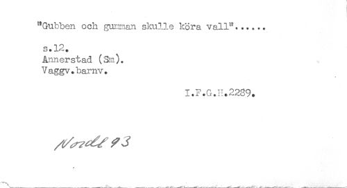 //// ^Gubben och gumman skulle köra vall^...... //// innerstad (Sm). //// Vaggv.barnv. //// * //// I.F.G.11.2289. //// _____ - _____ < ////