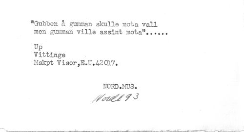 //// "Gubben å gumman skulle mota vall //// men gumman ville assint mota"...... //// Up //// Vittinge //// Mskpt Visor,E.U.A2017. //// HORD. ms. ////