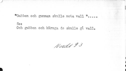 //// "Gubben och gumman skulle mota vall //// ! //// Se: t //// < //// Och gubben och kärnga de skulle gå vall. //// - //// H //// ! ////