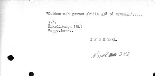 //// "Gubben och gumman skulle slå på trumman".*... //// s. 4* //// Orkelljunga (Sk) //// Vaggv.barnv. //// I F G H 222^. //// ^ / J ^ ////
