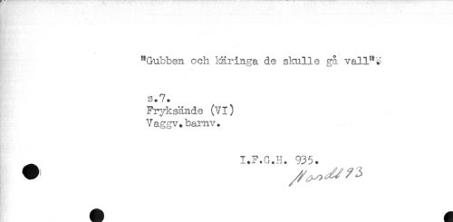 //// ' //// . < //// &<'-) ' t' * * //// "Gubben och käringa de slmlle gå vall"c //// s.7. //// Fryksände (Vi) //// Vaggv.barnv. //// I.F.G.H. 935. //// # ^^^^ //// K. ////