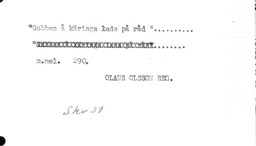 //// < //// "Gubben å kär inga lade på råd .......i //// t. - - - //// m.mel. 290. ' //// L //// i //// OLAUS OLSSON RBS. ^ //// i //// ! ////