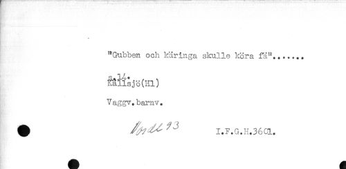 //// t- //// "Gubben och käringa skulle köra fä"......, //// kallsjö(Hl) //// * //// . //// Vaggv. barnv. //// ^ I.F.G.H.360L. ////