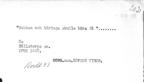 //// "Gubben och käringa skulle köra fä "... //// Ha //// Sä11storps sn. //// IFGH 3607. //// H6RB.:nus. KOPIOR VISOR. ////