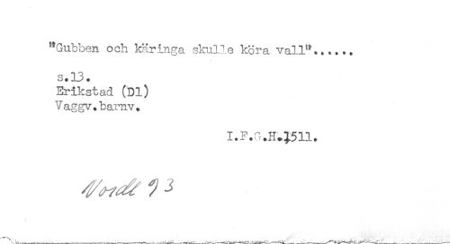 //// "Gubben och käringa skulle köra vall"...... //// s.13. //// Erikstad (Dl) //// Vaggv.barnv. //// I.F.r^.H.3.511. //// \ ____...-----.....----- - ---^__,___.-..'-M _ ___---^^----- ////