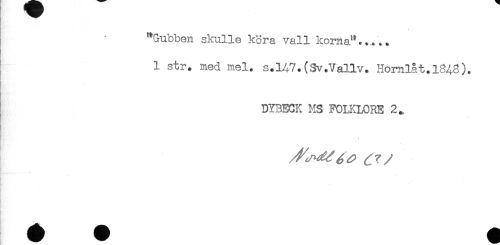 //// "Gubben skulle köra vall korna"..... //// 1 str. med mel. s.lA7.(Sv.Vallv. Hornlåt. //// DYBECK MS FOLKLORE ////