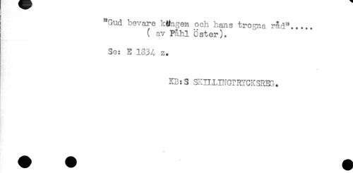 //// "Gud bevare k#ngen och hans trogna råd"*.... //// ( av Påhl Qster). //// Se: E 1834 z. //// - //// KB: S SKILLB-iGTRYCKSRBG. ////