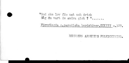 //// g //// ^Gud ske lov föe mat och drick //// 3ag du vart de andra gick ? //// Förvrin^da o.parodiska bordsböner .XXXIIT s.327. //// < //// REHI'JBERG ARBETETS FOLKDIKTNING. //// t //// --- --^H) -- ----- ------------- ^^ .-.-. - _ ^ ////