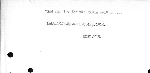 //// **Gud ske lov för min gamla mor^....... //// Lekt.1941.Cg.Norrköping. 1910. //// NORD.HUS. //// i //// 4 ////